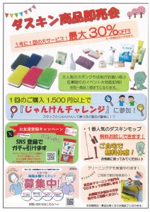 ダスキン商品即売会 最大30%OFF 1回のご購入1,500円以上で「じゃんけんチャレンジ」に参加できます。
